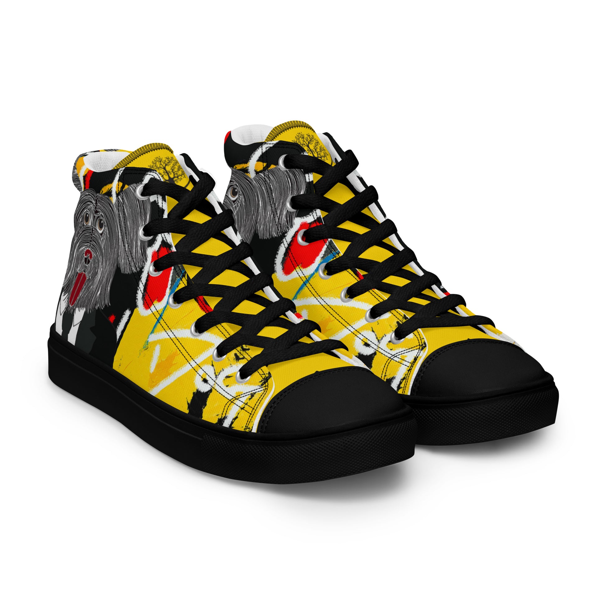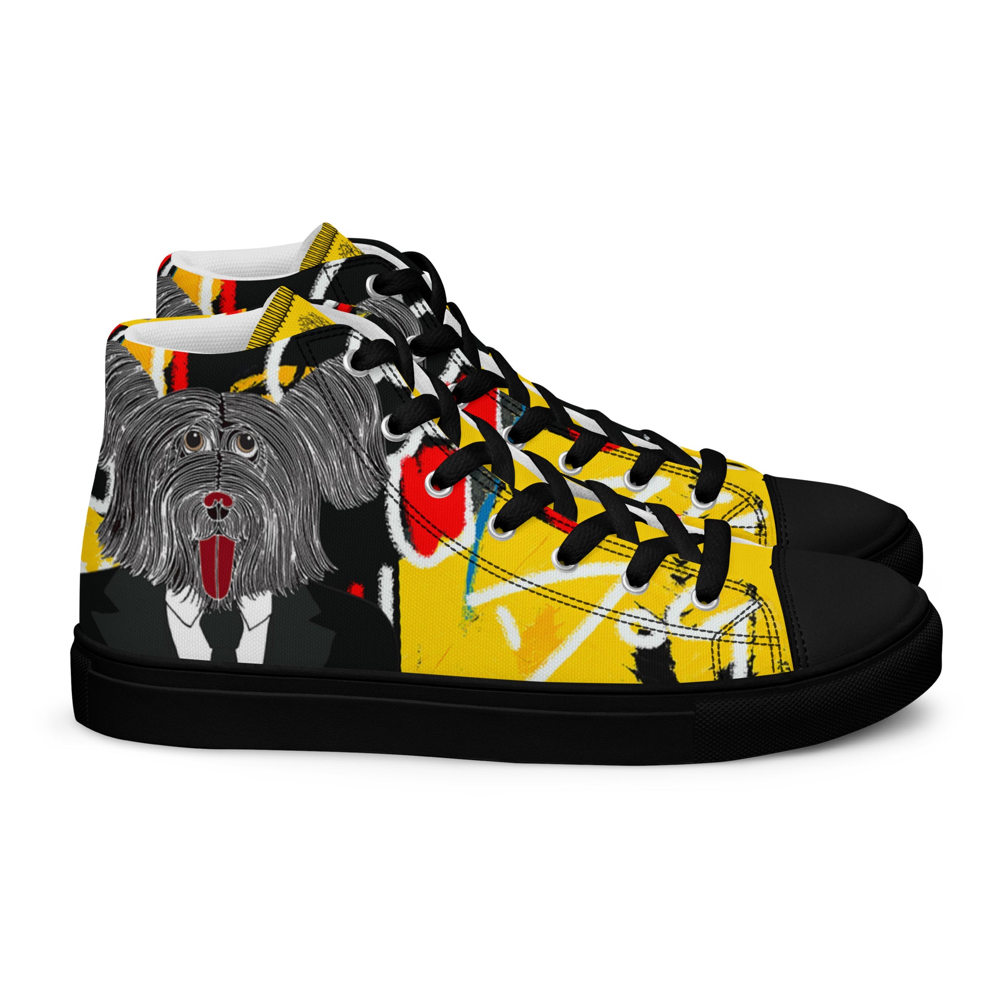 Introducing the limited edition Jean-Michel Bark-At-Cats High Top Sneakers, a wonderful piece of comfort and style, designed by artist Rob Pepper. These sneakers are not just footwear; they are a wearable canvas of creativity and art and only 100 pairs will be made!