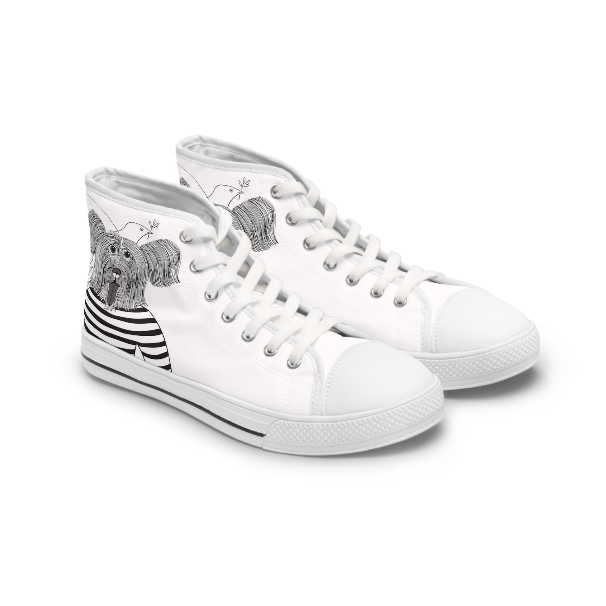 Introducing the limited edition Woman's Puplo Pupcasso High Top Sneakers, a wonderful piece of comfort and style, designed by artist Rob Pepper. These sneakers are not just footwear; they are a wearable canvas of creativity and art and only 100 pairs will be made!